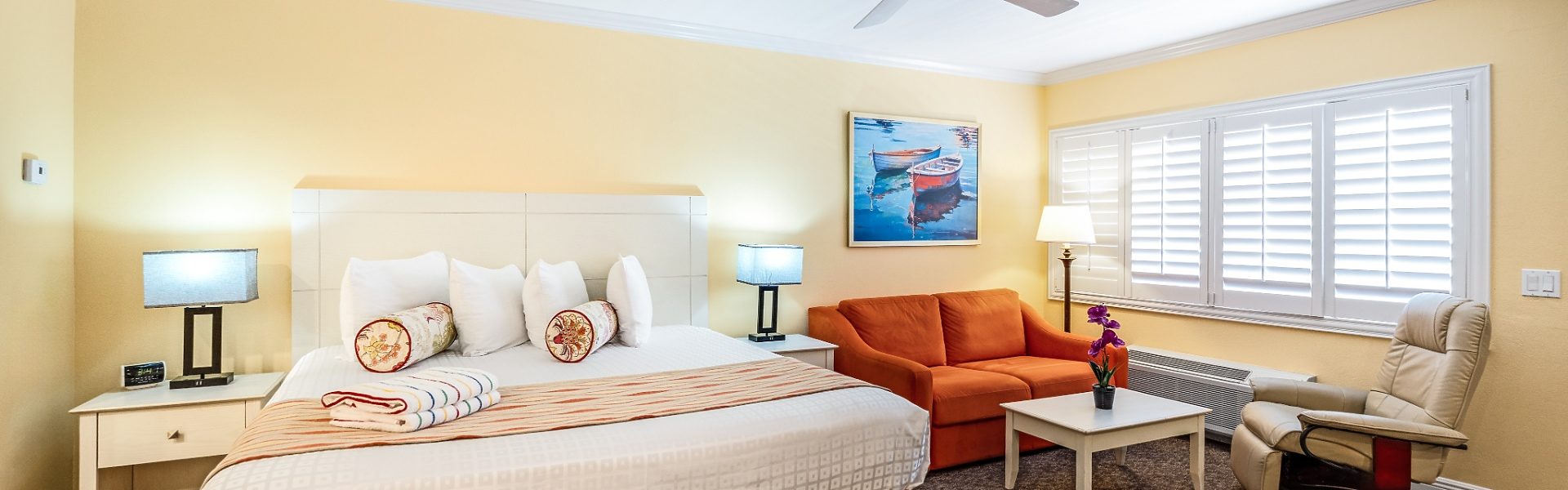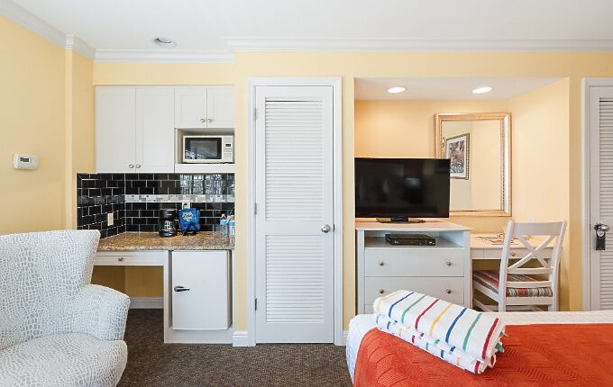Our Standard Double and Standard King guest rooms are the perfect size for two people and ideal for shorter stays. Guests who stay in a standard room enjoy features including a kitchenette with mini-fridge, microwave and coffee maker.